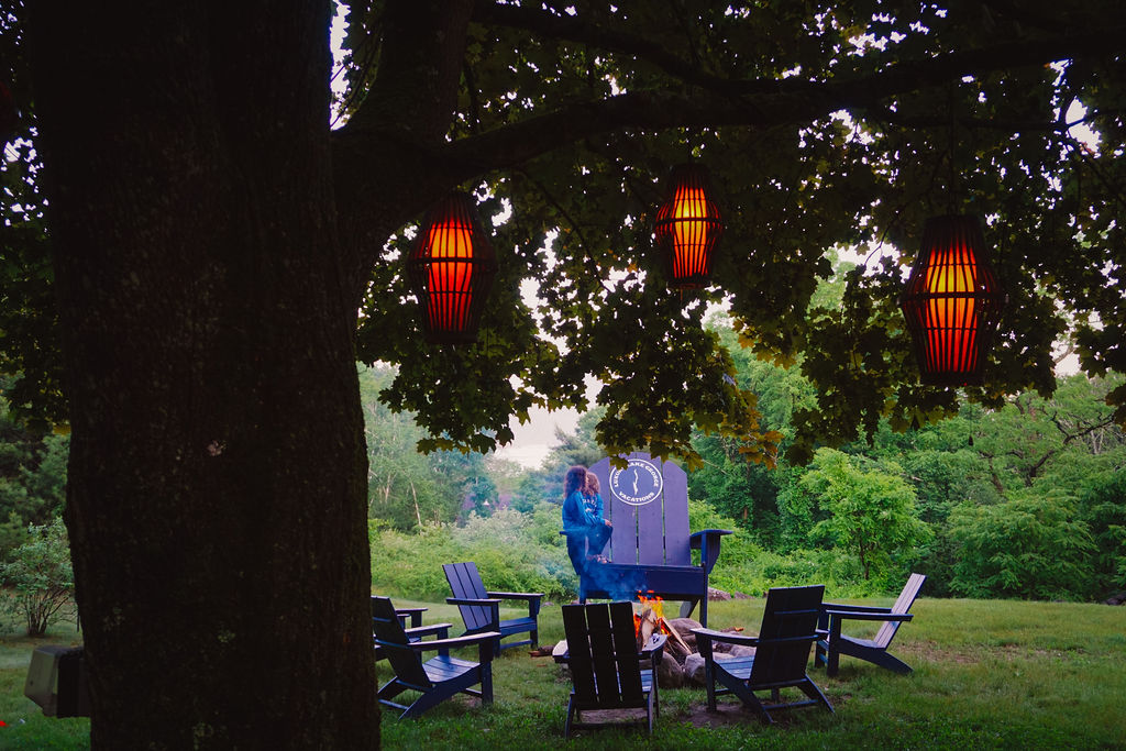 ⭑ Fire pit area with firewood and large adirondack chairs provided, perfect for toasting marsh mellows & telling ghost stories 🔥 🪵 🍫