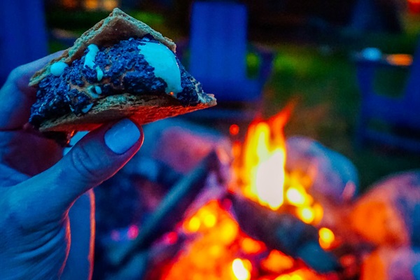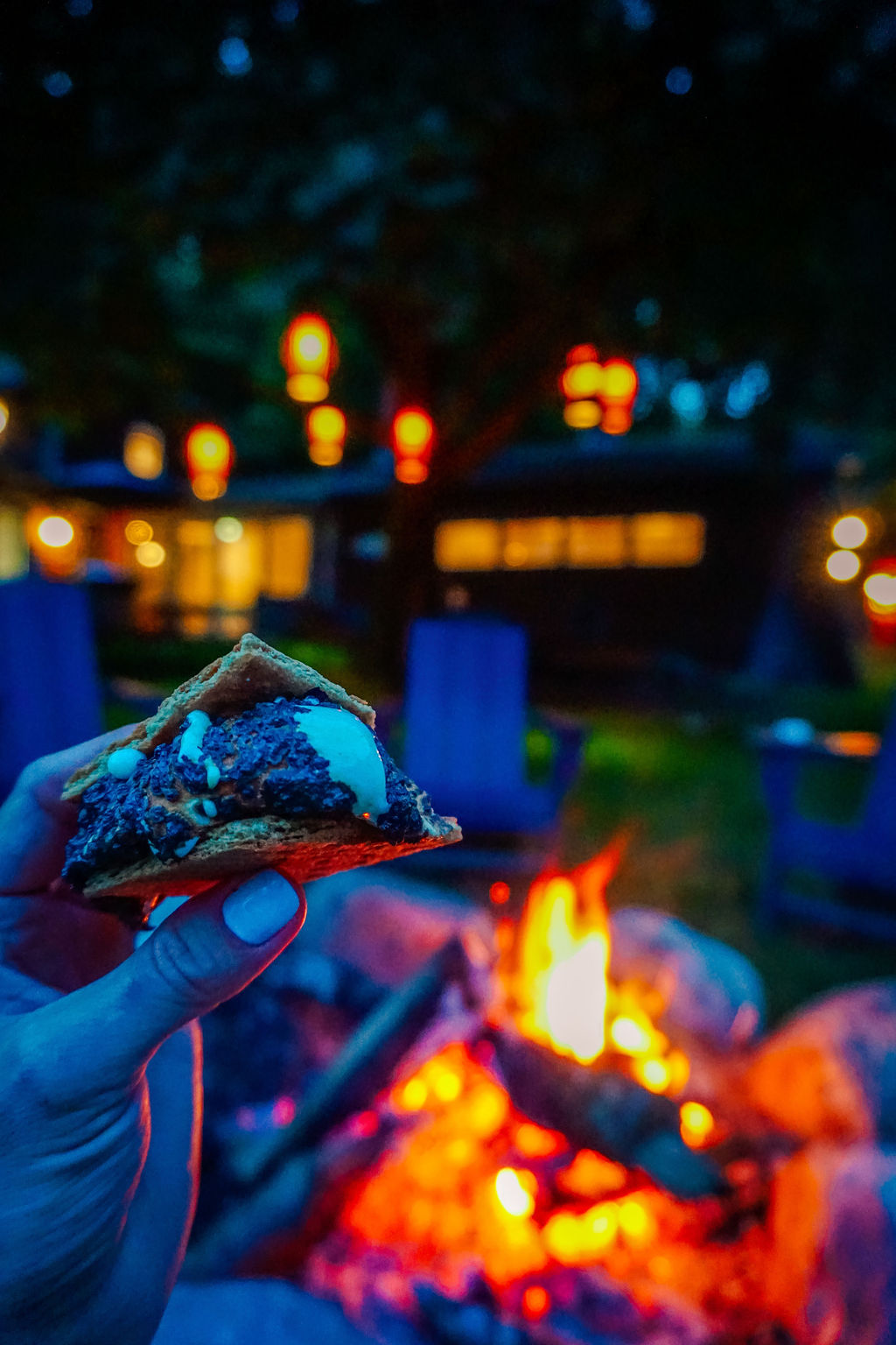 ⭑ Fire pit area with firewood and large adirondack chairs provided, perfect for toasting marsh mellows & telling ghost stories 🔥 🪵 🍫