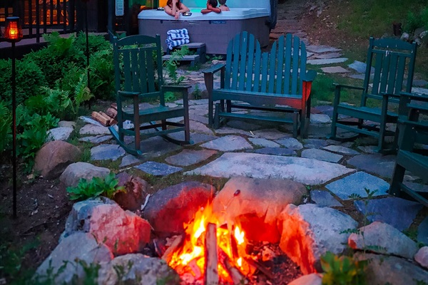 ⭑ Fire pit area with firewood and large adirondack chairs provided, perfect for toasting marsh mellows & telling ghost stories 🔥 🪵 🍫